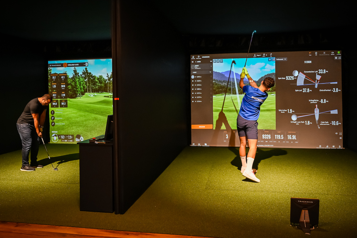 Box 1 und 2 sind voll ausgestattete Simulatoren ( Trackman IV ). Ergänzt werden diese durch einen Abschlagplatz mit Netz.